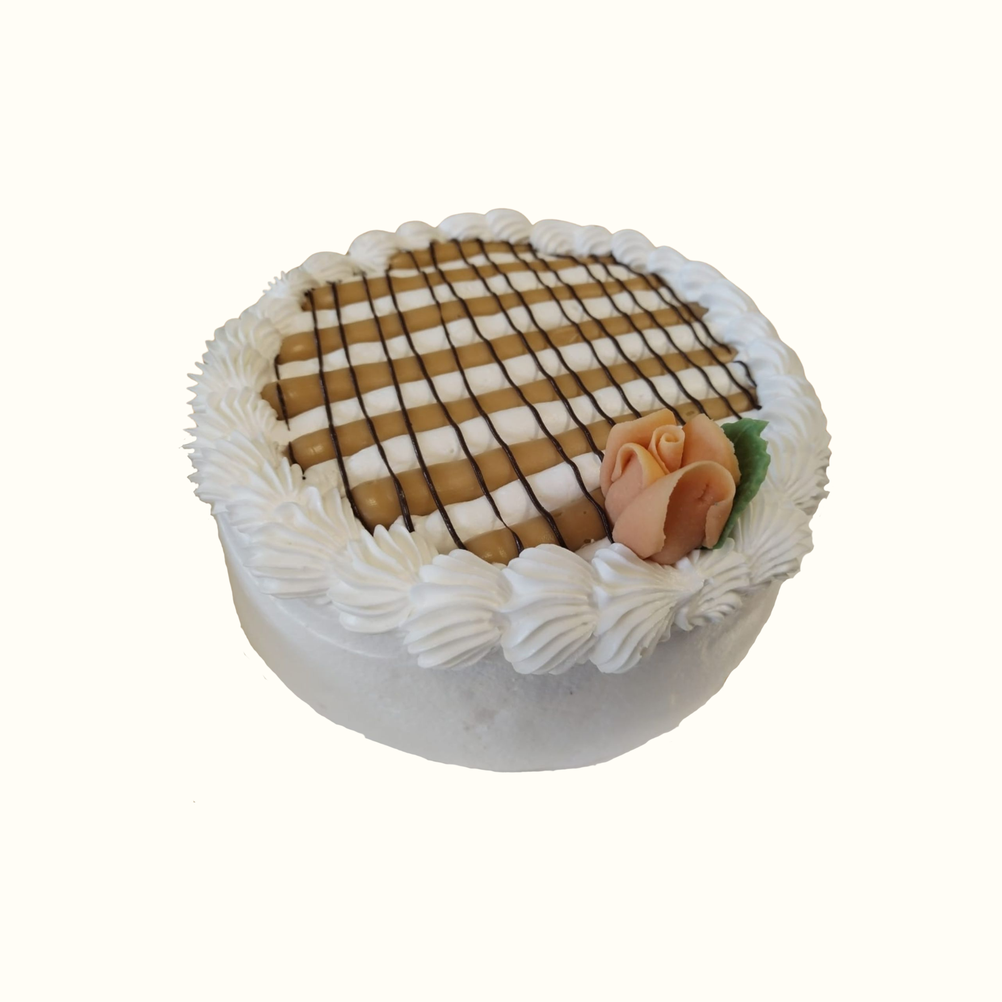 Vaalea kakkupohja (VEHNÄJAUHO, KANANMUNA, sokeri, vesi, perunajauho, leivinjauhe (E450, perunatärkkelys, E500), emulgointiaine Colco UA (vesi, E471, E475, E420, E470a, etanoli, E432, E283)). sekamarjahillo, kreemi, kinuski.
